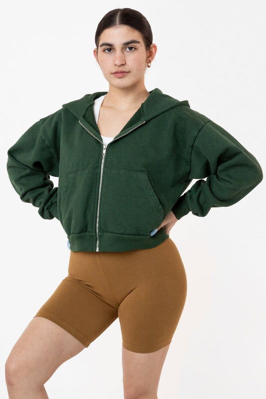 Heavy Fleece Cropped Zip-Up Hoodie (Garment Dye)
